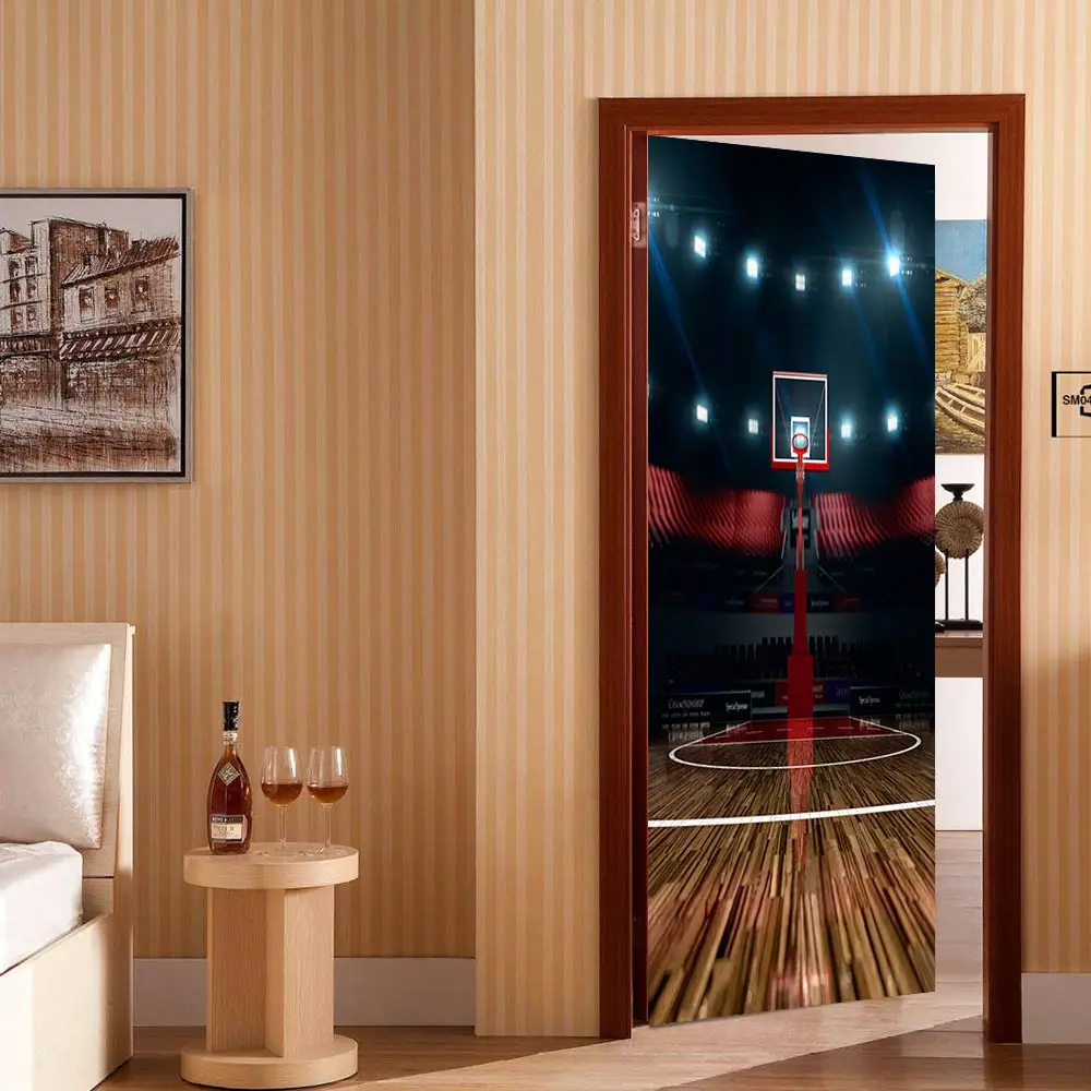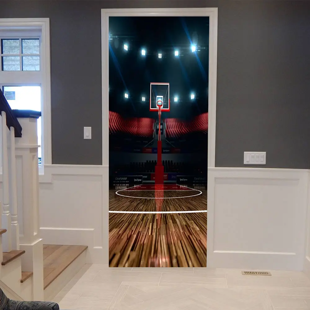 3D Door Stickers Creative Basketball Stands Waterproof Living Room Bedroom Door Wallpaper Self Adhe