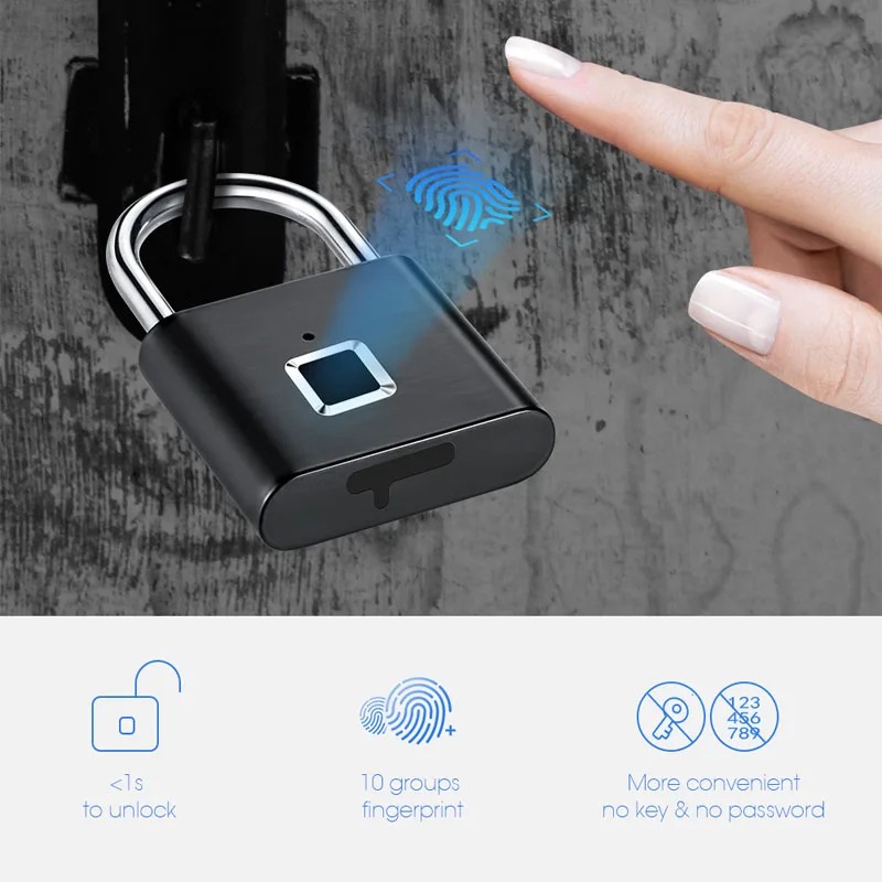 Golden Security Keyless USB Rechargeable Door Lock Fingerprint Smart Padlock Quick Unlock Zinc allo